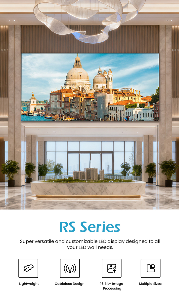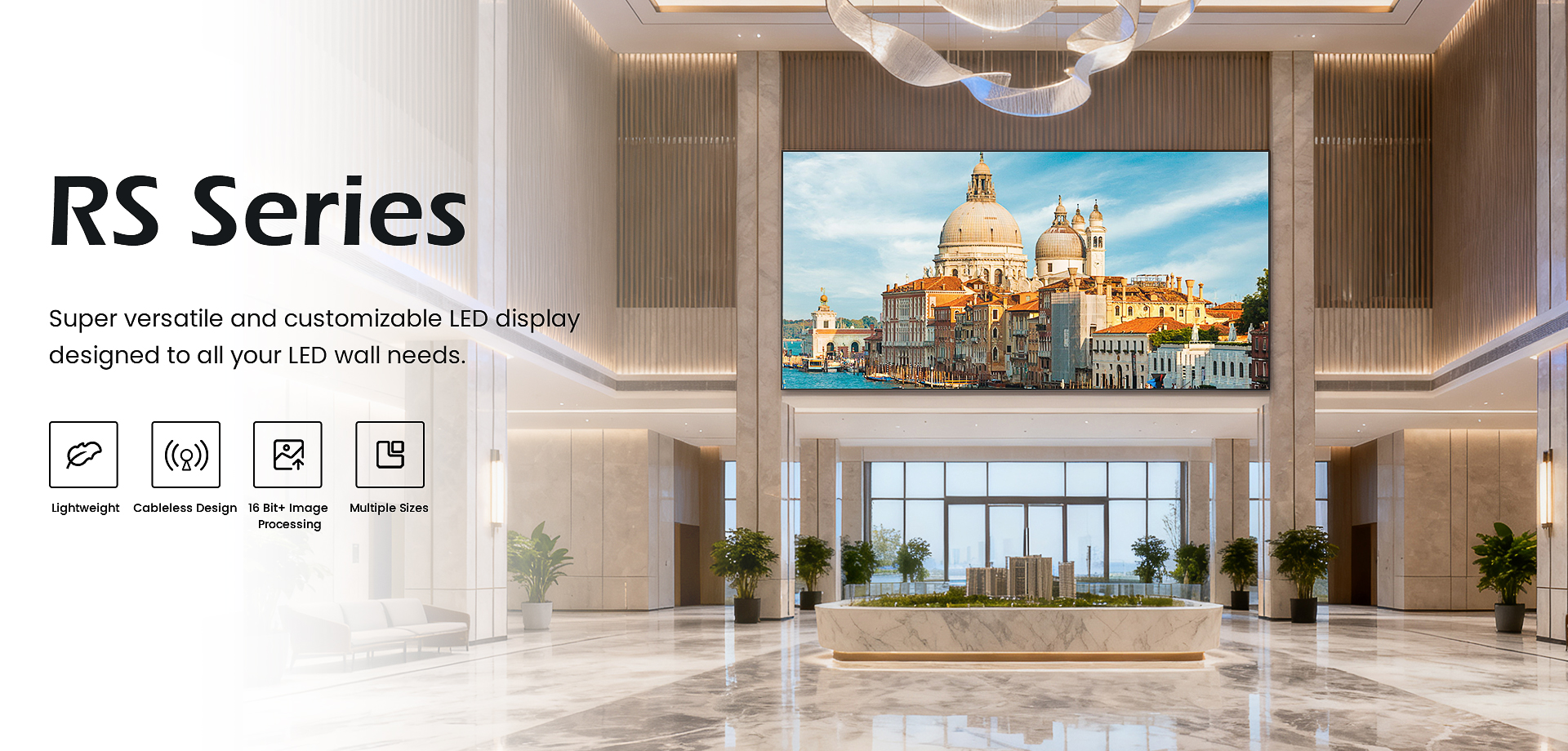 The RS Series is a versatile and customizable LED display designed to meet a wide range of use. The slim, lightweight design offers you a easy way to wrap up your environment with a layer of LED skin. It's a great product to help you digitalize your venues.