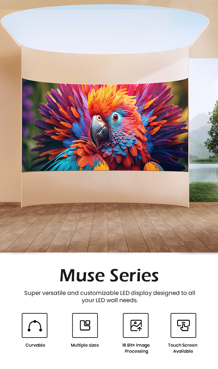 EZ LED Muse series is a cutting-edge display solution designed to adapt to your creative vision. What sets Muse apart is its unparalleled flexibility. Crafted with bendable rubber modules, it effortlessly shapes into concave, convex, or even wave-like forms, enabling dynamic and unique designs that transform any space.