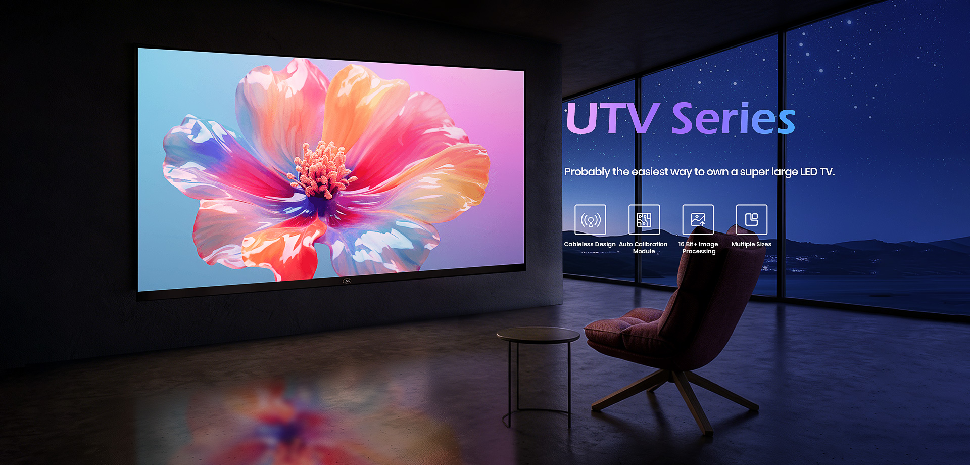 Aimed at simplifying LED wall installation and daily operation, UTV series was designed for people who look for an easy way to integrate LED wall solution for corporate, higher education, hospitality, residentail and much more. It's an all-in-one LED TV solution that everyone can use with an ease. Available in four different sizes 108'', 136', 163' and 217'' and in 1080P HD and 4K resolution.